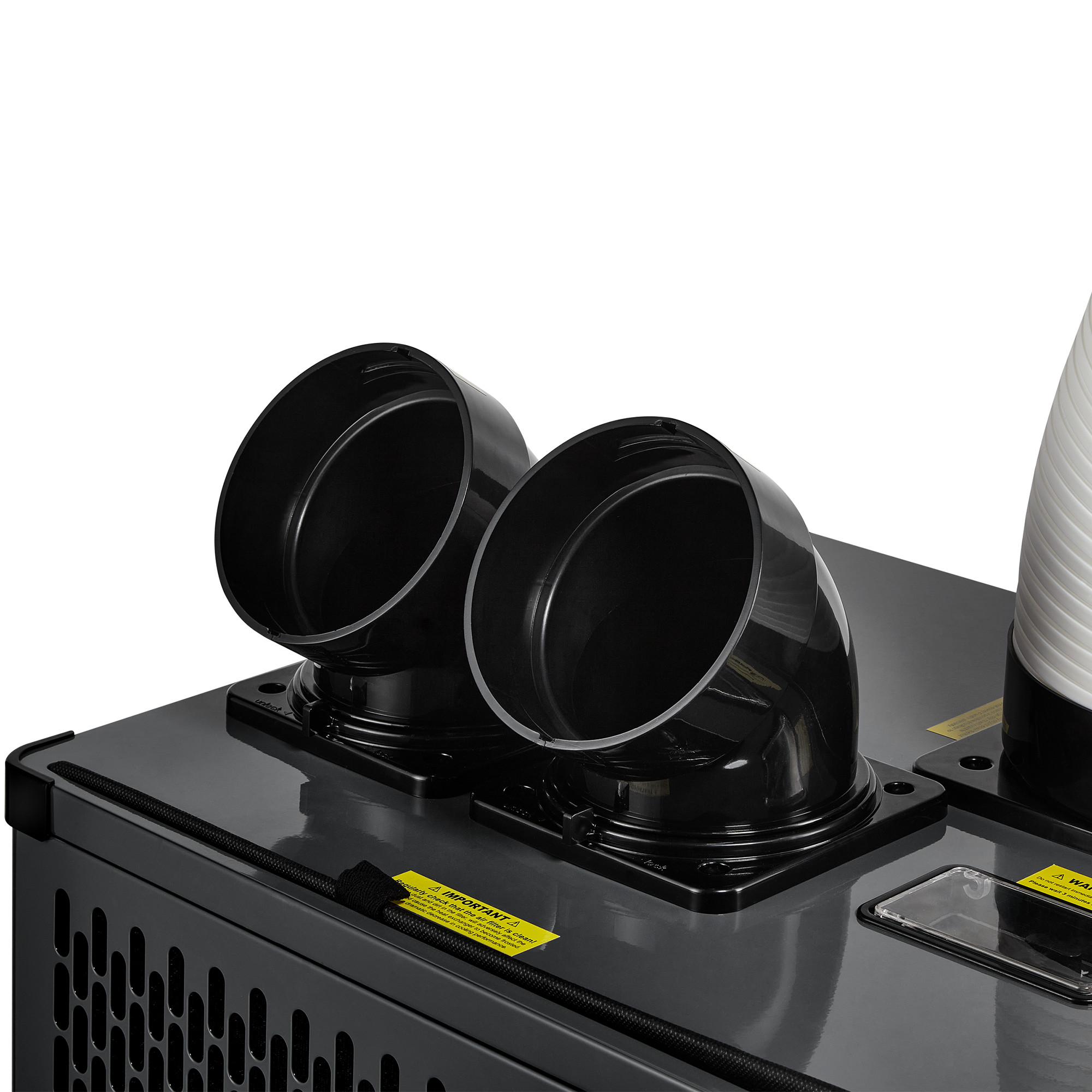 В кондиционерах реализовано 3D распределение воздушного потока благодаря гибким патрубкам выполненным из плотного ABS пластика. Каждый из них может быть доукомплектован перфорированным воздухораспределительным рукавом, длиной до 5 метров, обеспечивая полное покрытие помещения.